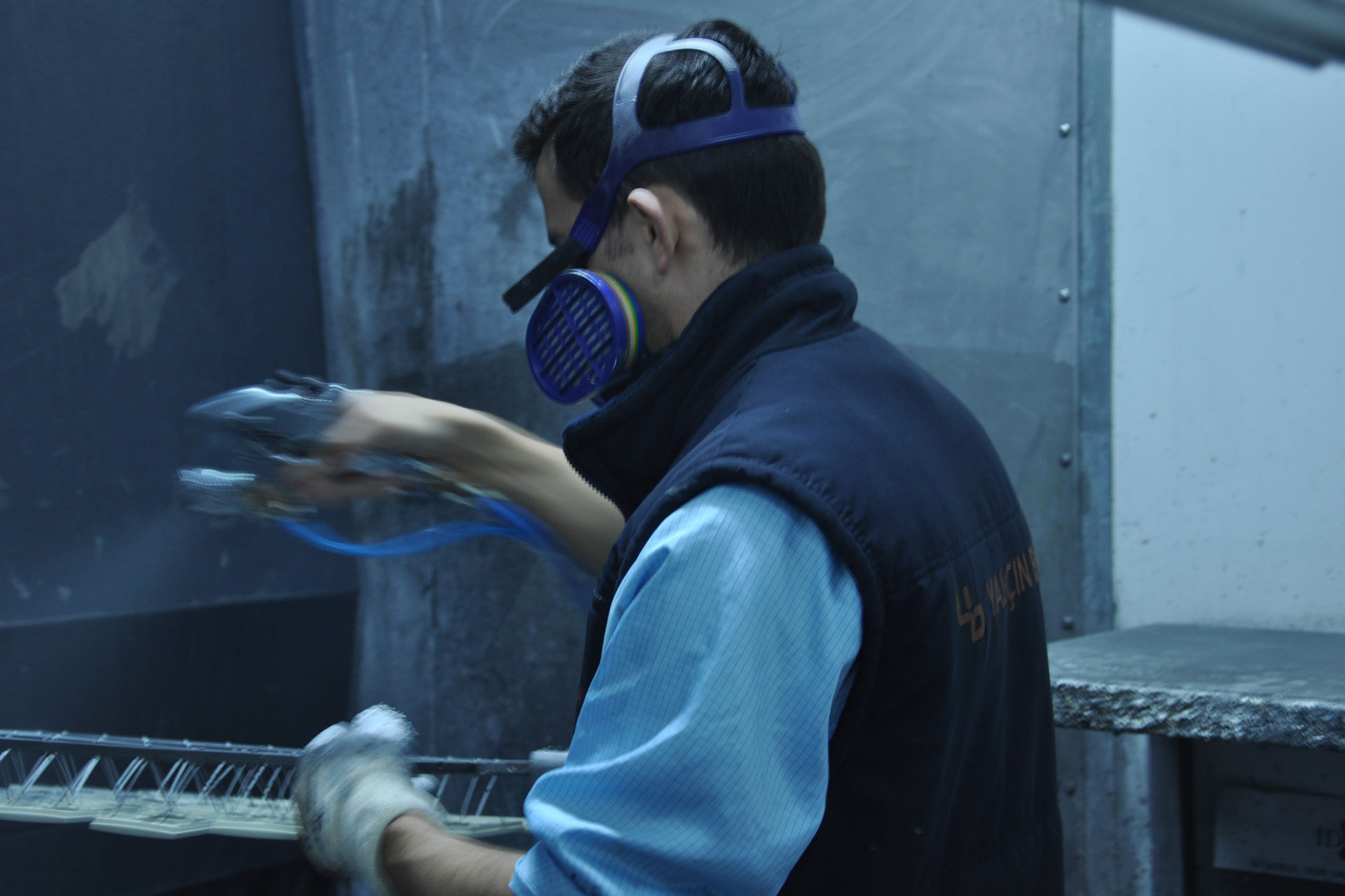 With 2 automatic seperated doors for external entrances, dust free environment with 3 different filtration systems, and with a total of 500 m2 indoor area; products of different sizes and features can be painted/coated and dryed in our special design paint shops.